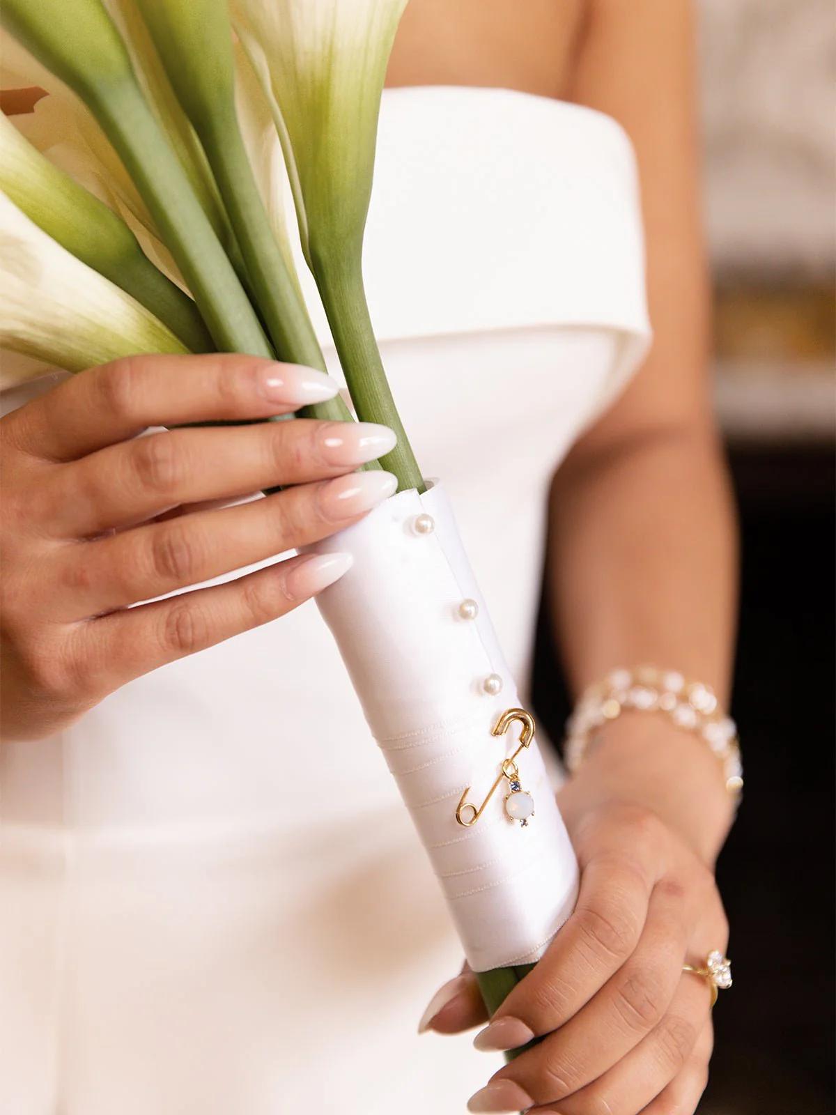 Marriage is a promise of forever, and oval cut gemstones symbolize just that. Wear this precious keepsake charm on your bouquet, dress, or bag on your big day to give the age-old tradition of wearing “something blue” an elegant twist. The deep shade of this luxe gem will look stunning in photos, too!